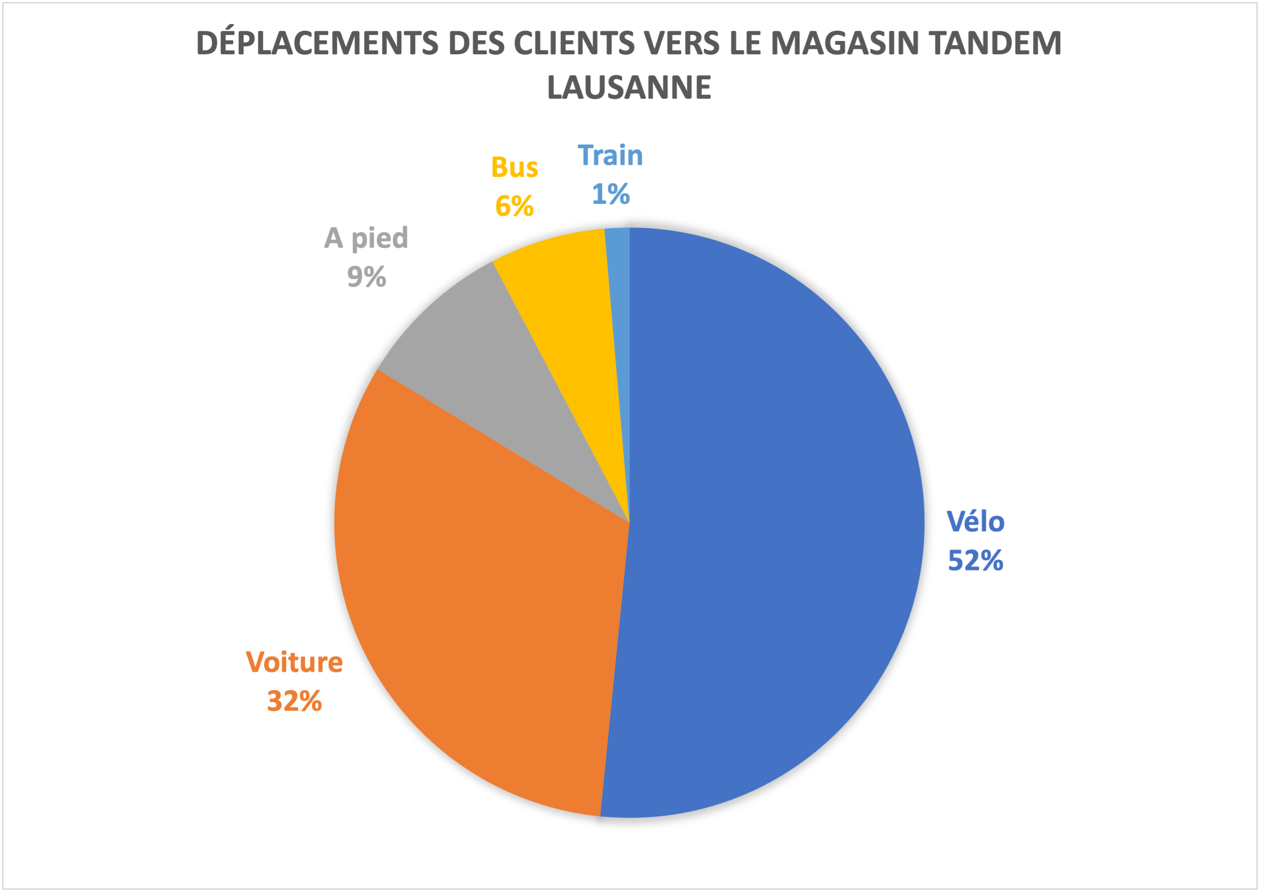 L’équipe TANDEM s’est intéressée à savoir où habite la clientèle et par quel moyen elle se déplace pour venir au magasin. Durant le mois de mai 2021 (20 jours ouvrables), un total de 350 clients ont répondu au sondage en magasin, à Lausanne et Riviera.