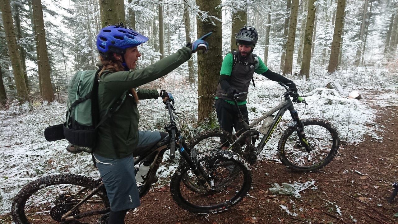 Les trois guides diplômés Swiss Cycling Sidonie, Stephan et Johannes en plein repérage pour le tours guidés en VTT électrique. Le 1er tour guidé qui aura lieu le 21 avril. Aujourd’hui il faisait encore un peu cru. Mais cela donnait un décor féerique. Et le soleil était en rendez-vous une fois de retour au bord du lac à Vevey!