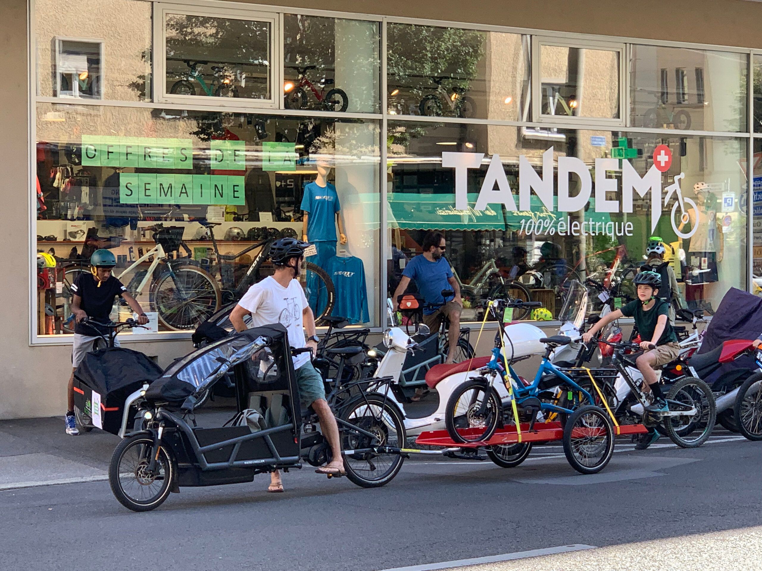 Le départ a eu lieu depuis le magasin TANDEM à Lausanne, et nous avons roulé tous ensemble jusqu’au Festival de la Transition à Ecublens!