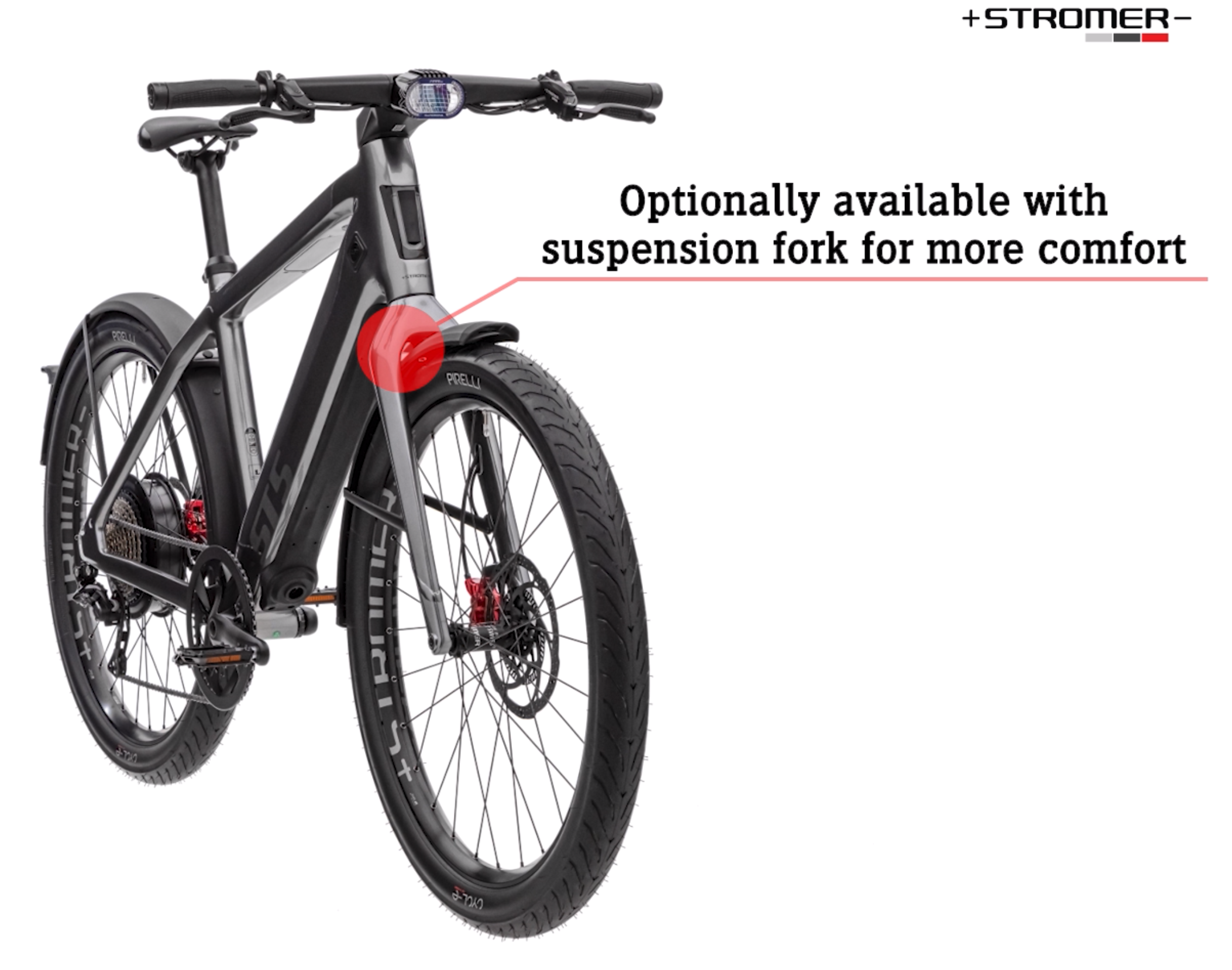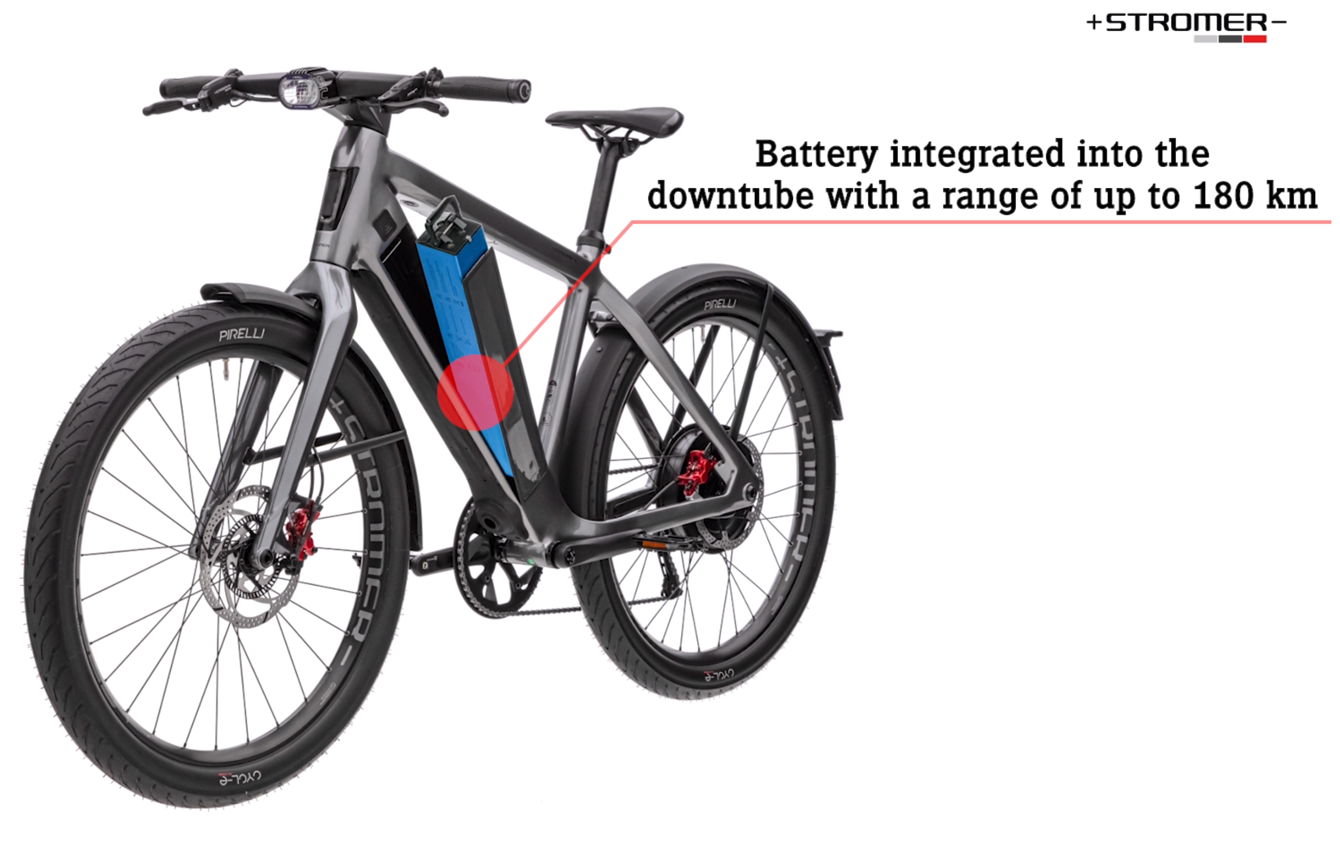 - Dérailleur électronique précis et rapide Shimano XTR Di2, freins 4 pistons TRP à réglage fin et pneus Pirelli Cycl-e spécialement développés pour Stromer : le ST5 ABS tire sa force de composants de grande valeur, conçus pour une performance instantanée.