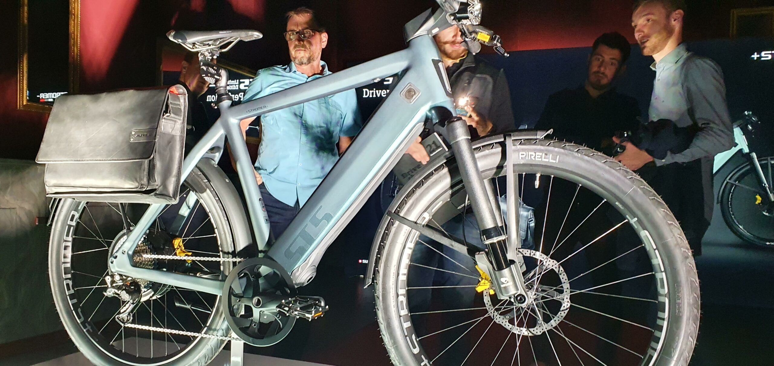 Les étriers de freins en jaune et une très belle sacoche en cuir en plus!