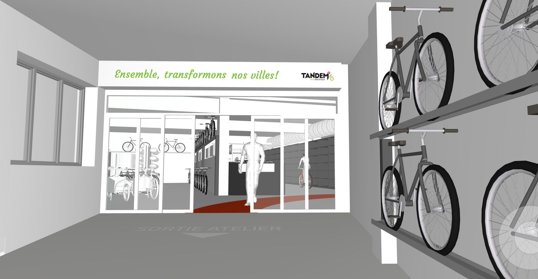 Un nouvel espace adjacent au magasin actuel sera aménagé, afin de répondre encore mieux à cette demande grandissante. Il sera dédié en grande partie à l’entretien des vélos électriques. Dans le but de pousser encore plus loin sa mission de transformer nos villes, TANDEM se réjouit de pouvoir utiliser désormais pleinement les espaces dédiés précédemment à l’automobile.