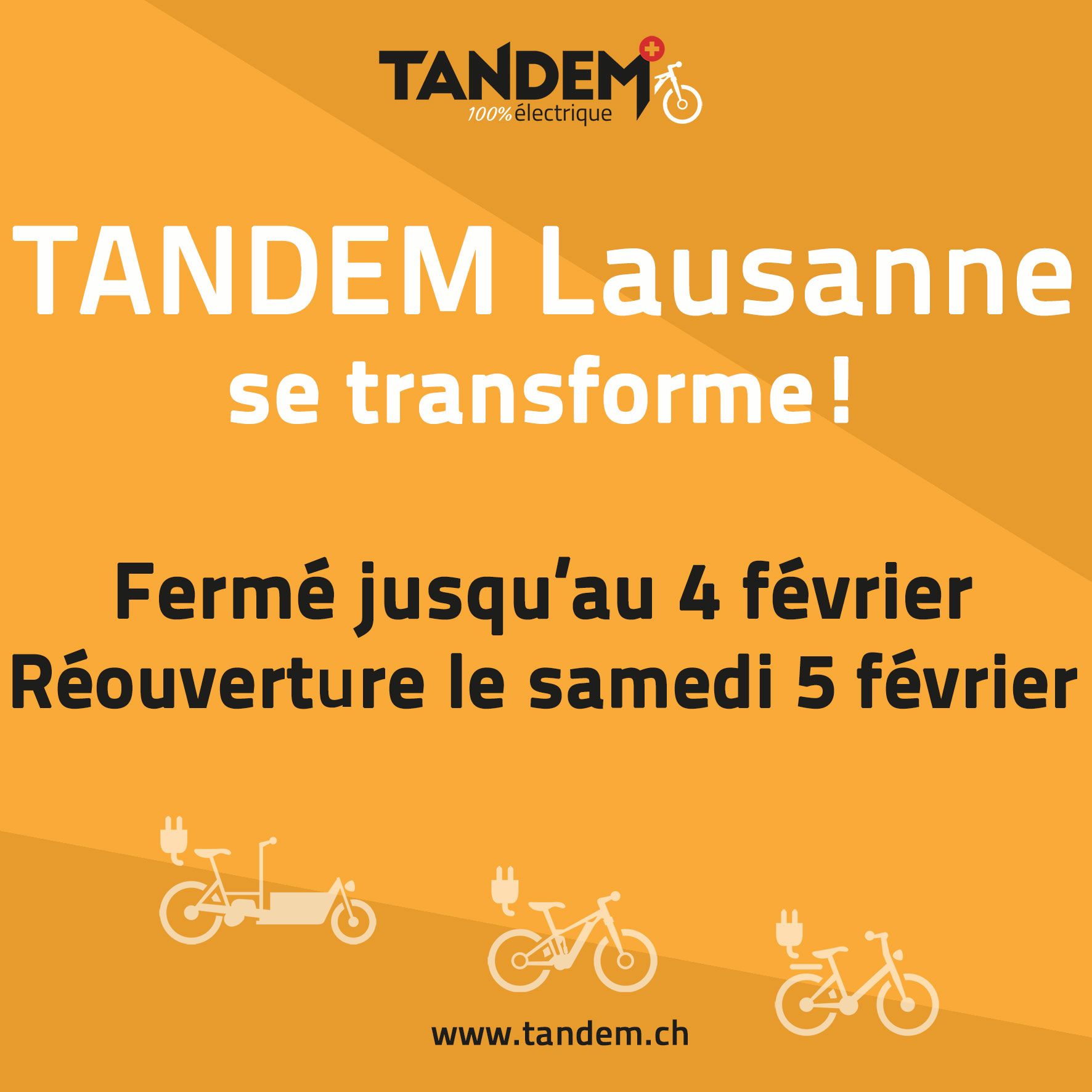 Plus d’espace pour vous, pour l’entretien de votre vélo et pour encore plus de vélos. L’équipe TANDEM se réjouit d’ores et déjà de vous accueillir dans les locaux transformés dès le 5 février !