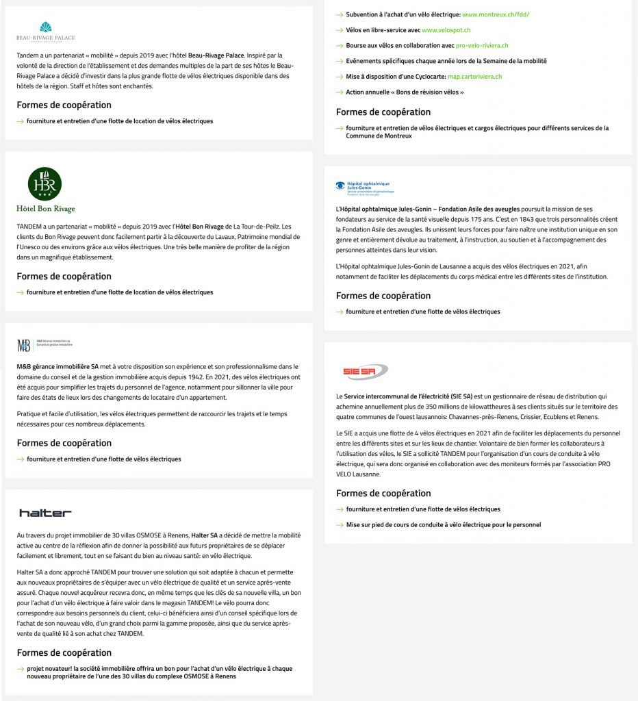 TANDEM est fière d’accompagner de nombreuses entreprises, des institutions et des artisans dans la mise en place d’une solution de mobilité basée sur le vélo électrique.